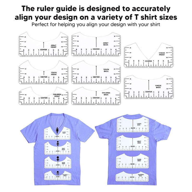 4. Accurate Alignment: The design of the ruler guide is specifically tailored to enable accurate alignment on T shirts of various sizes. It allows you to align your design accurately regardless of the shirt size.
