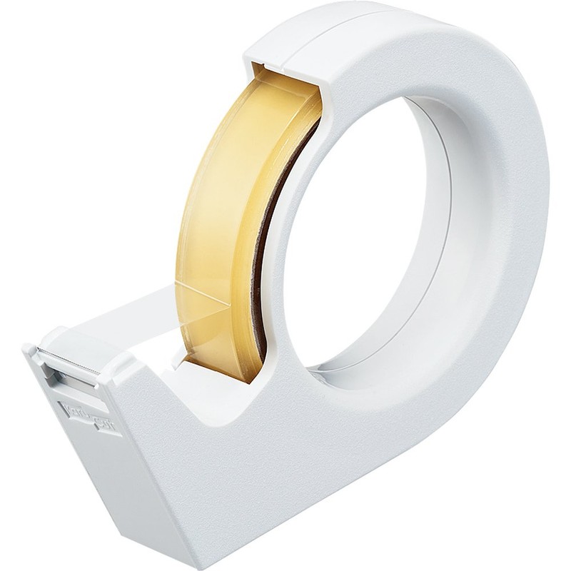 - A tape cutter with a straight cut