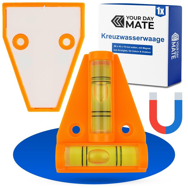 - ✅ [Magnetic spirit level with two shatterproof acrylic glass tube levels] The cross spirit level is resistant to the weather and knocks thanks to the durable acrylonitrile butadiene styrene (ABS) plastic and the (polymethyl methacrylate) PMMA acrylic glass.