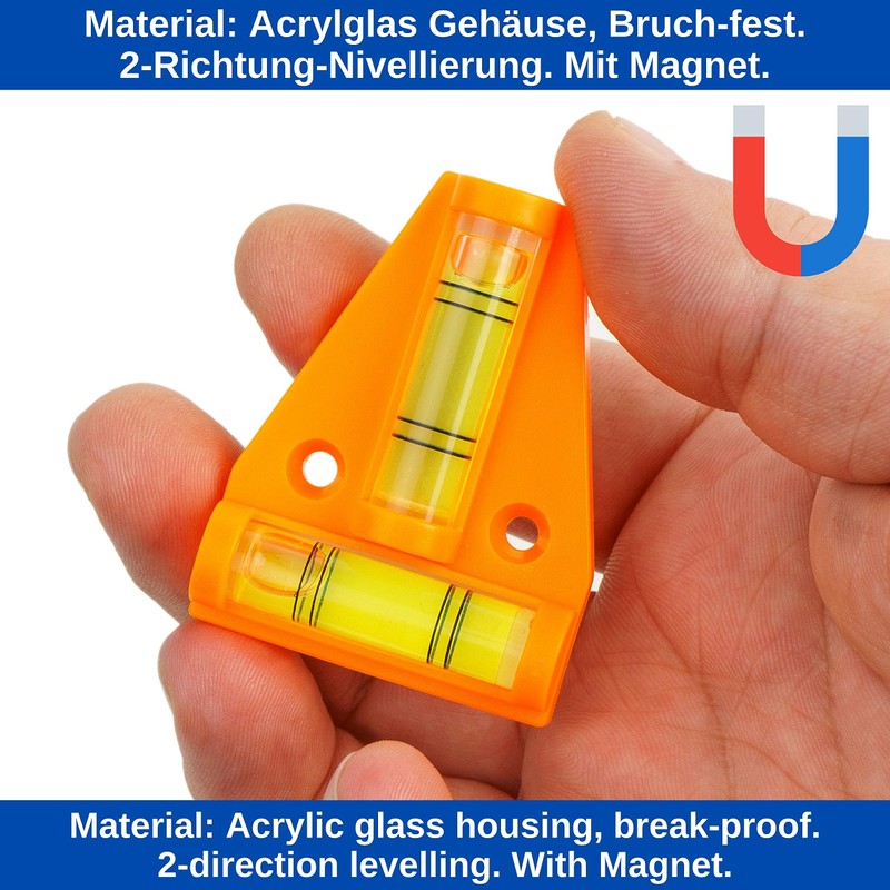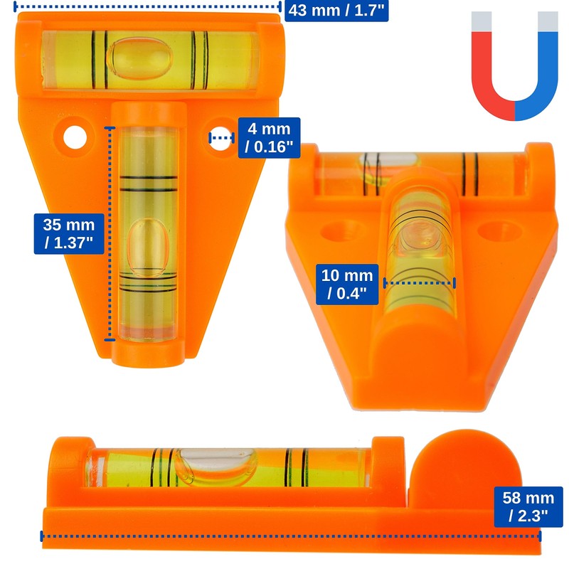 - ✅ [Contents] 2 x small spirit levels with magnet, camping accessories for caravans and motor homes, in the home for attaching pictures, TV wall brackets, furniture, shelves or for on the go as a tripod accessory.