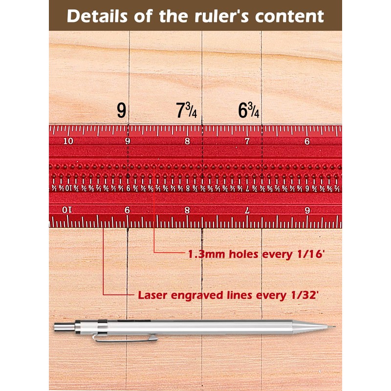 - [PRECISE MEASUREMENT] - Laser-engraved 1 mm scales, precise holes and 45° beveled edge deliver accurate marking & scribing; insert pencil into hole, slide for evenly spaced, perfect lines.