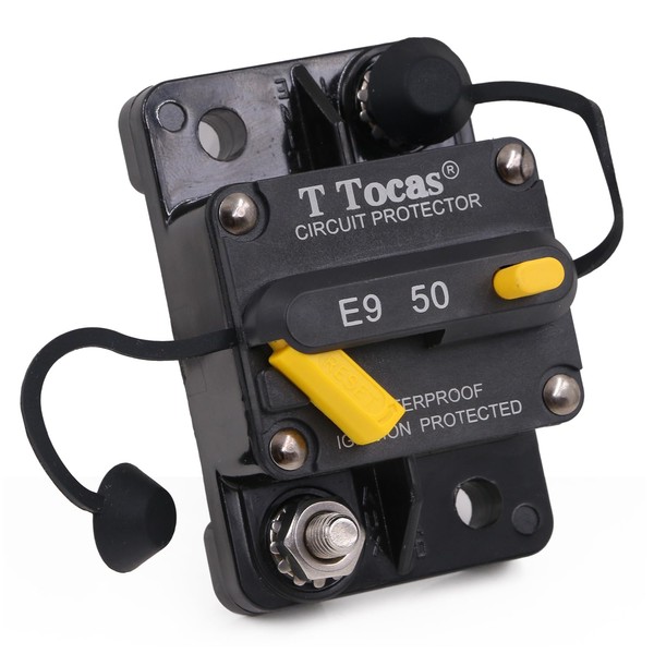 T Tocas Type III 50 Amp Circuit Breaker with Switch Button Manual Reset, 12V - 48V DC, Waterproof 50A dc Breakers