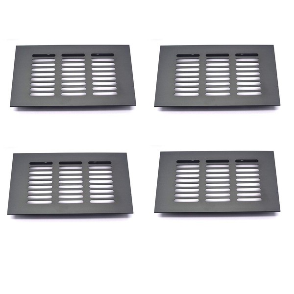**Product Specifications:** Material:Aluminum Alloy Color:Matte Black Size:150x80x14.5mm/6"x3.1"x0.6"(L*W*H) Card Slot Size:118x63x13.2mm/4.6"x2.5"x0.5"(L*W*H) Thickness:1.2mm/0.05" Net Weight:34g **Features:** Suitable for cabinet,shoe cabinet, wardrobe.etc The grid is evenly distributed and is not easily deformed **Notes:** All dimensions are measured manually and there may be small deviations. The color may have different as the difference display, Please understand. **Package Content:** 4 x Ventilation Grilles **Our aim is to provide Top Level Customer Service, please feel free to contact us so that we can try our best to solve any problem. Thank you very much!**