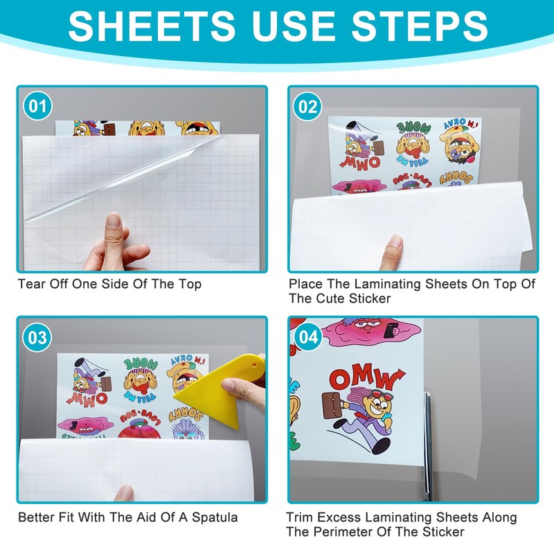 - EASY TO USE: Peel and stick the adhesive side to the surface to be laminated, then trim as needed. Friendly to children and first-time laminating paper users without difficulty.