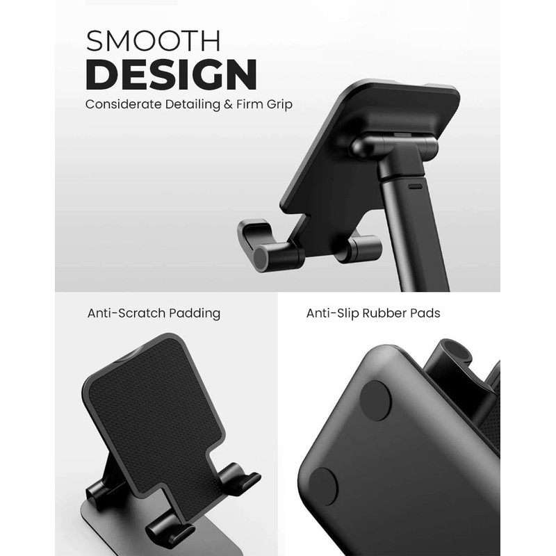 - Anti-Slip Design: Equipped with anti-slip silicone pads on the base and the holder, the stand provides a stable and secure grip, preventing your device from slipping or scratching.