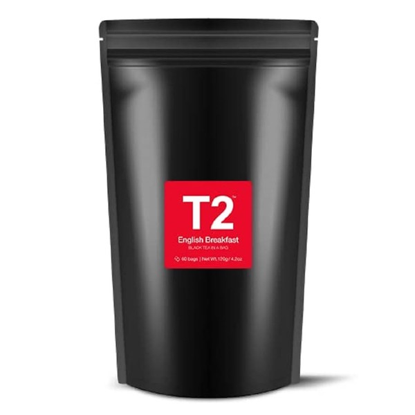 T2 Tea English Breakfast Black Tea Bags in Resealable Foil Refill Bag, 60-Count