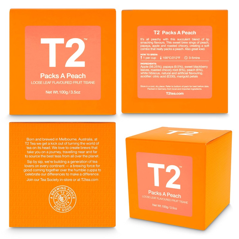 T2 Tea Fruit Tea, Packs a Peach Loose Leaf Fruit Tea in Box, 100 g, 1 x 100 g