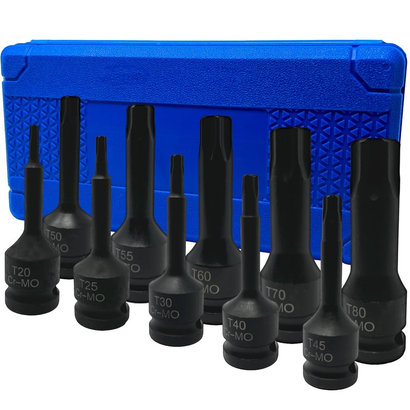 - Specification: This set includes 10 pieces in T20, T25, T30, T40, T45, T50, T55, T60, T70, T80 and is designed for efficient use in confined spaces, complemented by a sturdy blow molded storage case for easy organization and transportation.