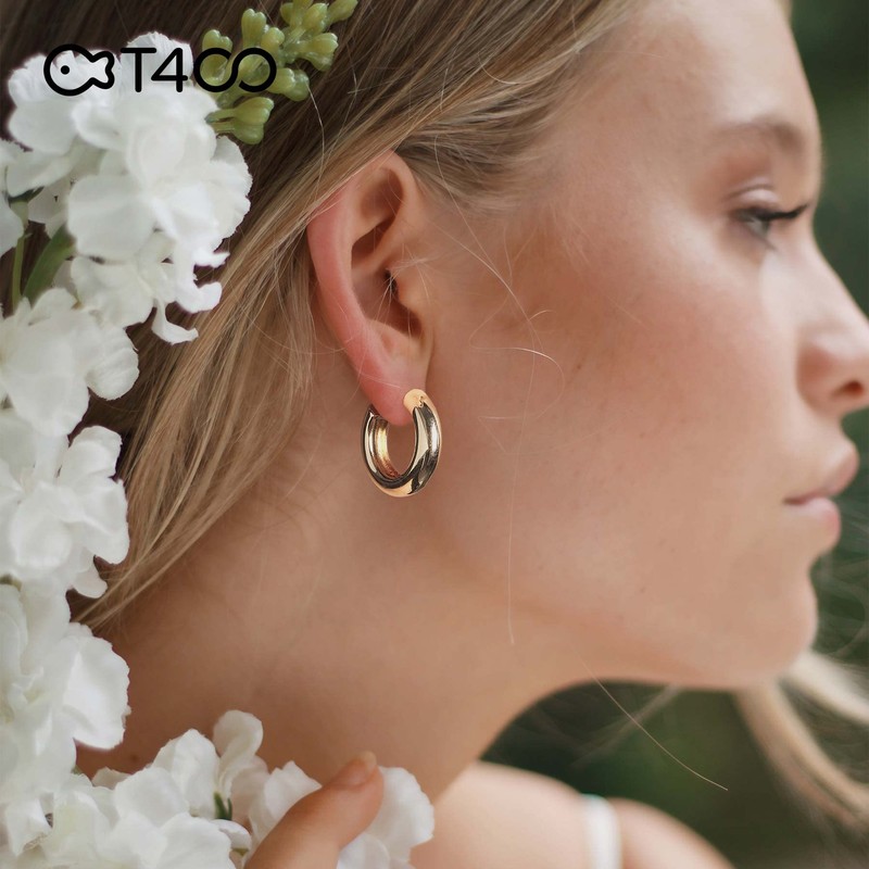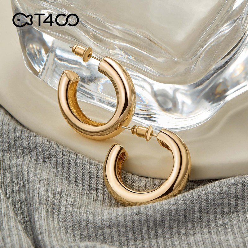 T400 Gold Plated Half Hoop Earrings for Women Small Chunky Round Hoops