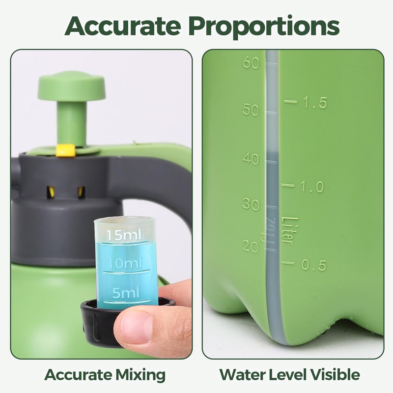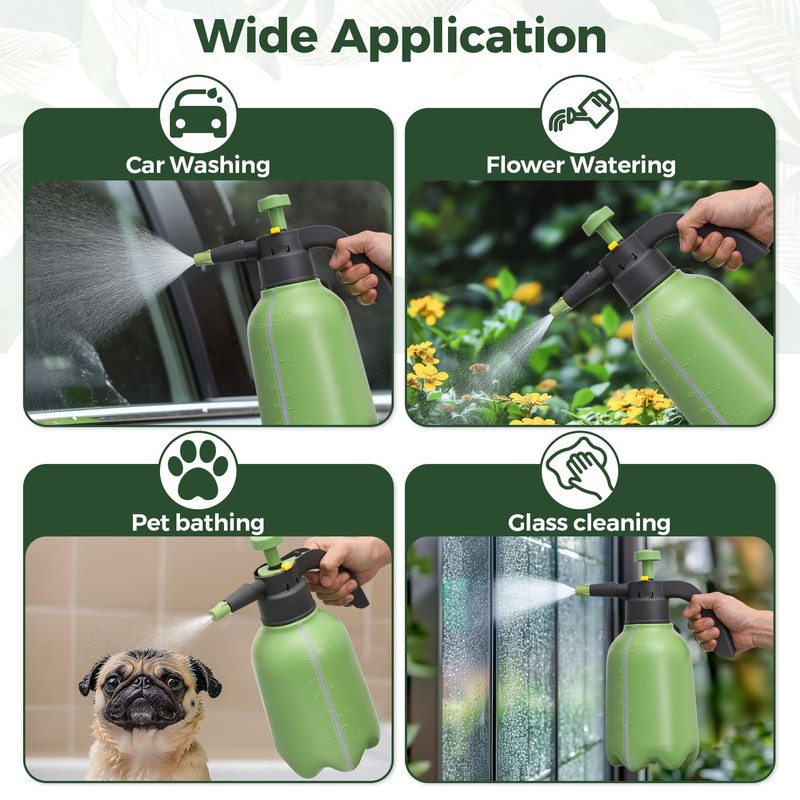 Hand Pump Sprayer 1/2 Gallon, Garden Pump Spray Bottle for Plants, Pressure Sprayer Bottle in Lawn and Garden Yard, Weed Chemical Sprayer with 2 Nozzle & Safety Pressure Relief Valve (2L/0.5Gal)