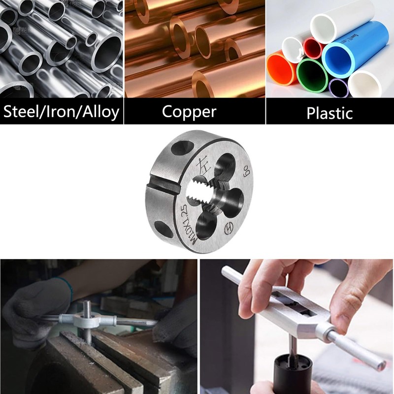 - [Versatile Use] It can be used in various materials like stainless steel, aluminum alloy, cast iron, copper, iron, aluminum, plastic. Suitable for maintenance and process on pipes, boards and automobile, electronic and machinery. Tips: lubricate for smoother cuts before using; Reverse every 1/4 turn for clean chip removal while using. To ensure easy cut and prevent damage to the die teeth, the bar diameter should be smaller (about 0.05-0.15mm) than the nominal diameter of the required thread.