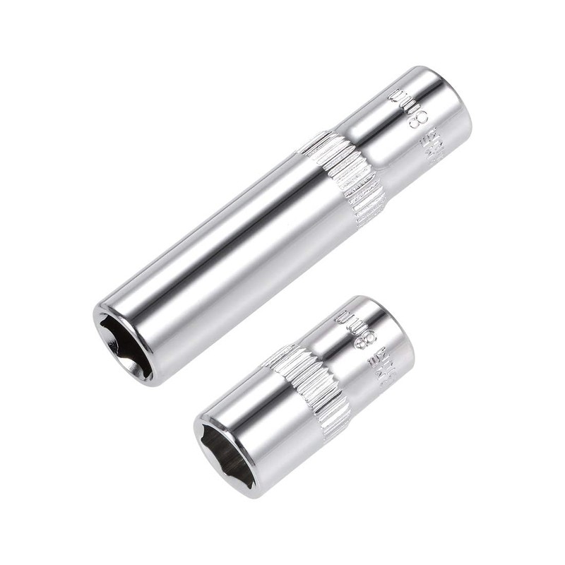 • 【Size & Package】1/4-inch drive, 8mm Deep and Shallow Socket Set, 25mm/50mm total long. Package including: 2Pcs x Deep and Shallow Socket Set.