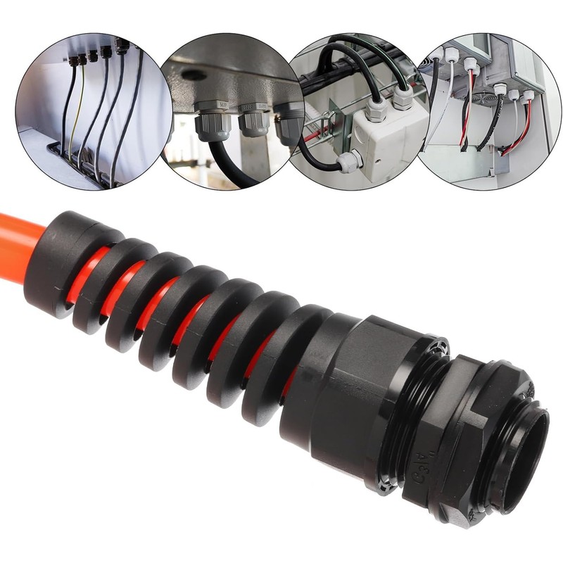 - 【Secure Strain Relief Design】The adjustable locking nut ensures a tight and stable connection, reducing cable tension and preventing accidental wire disconnection or damage. Cable Glands provide strain relief to cables through an extended spiral cable gland guard.