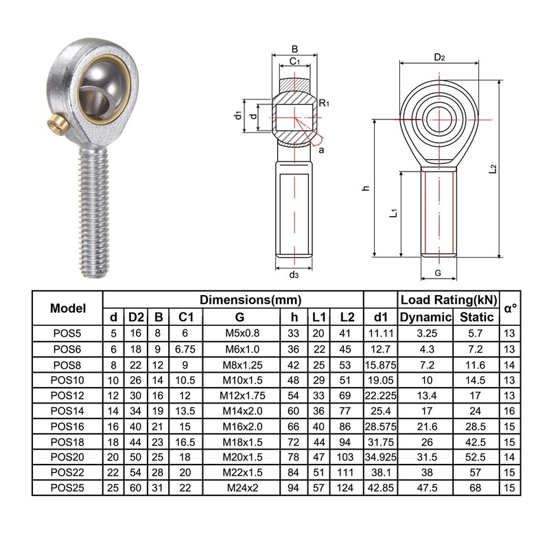- 【Precision POS6 M6 Rod Ends】This male rod end bearing set includes 2 POS8 M6x1 right-hand threaded joints, designed for accurate motion control in demanding applications