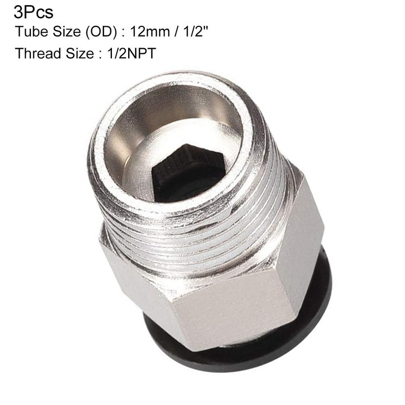TA-VIGOR 3Pcs 1/2NPT Male x 6mm Push to Connect Pneumatic Fittings, Straight Quick Connect Air Line Fittings Push in Pneumatic Connectors for PE PU Nylon Tubing Pneumatic Quick Joint Adapter