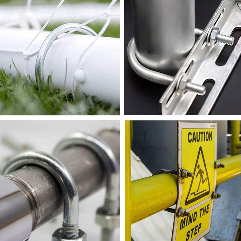 Versatile Applications: U-bolts serve various purposes in both residential and industrial settings, such as towing rings, pipe clamping rings, coupling rings, and clamping rings. They are also ideal for fastening or connecting pieces to pipes, wood, and more, making them suitable for DIY projects at home or in the garden, as well as outdoor activities.