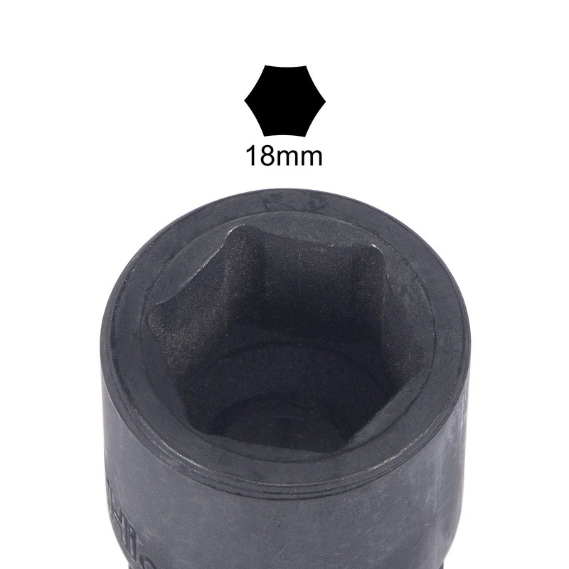 - 【Size & Package】Size: Drive: 1/2-Inch; 6-Point Socket Size: 18mm; Total Length: 39mm. Package including: 1Pc x 6-Point Socket Size. Note: The specifications are clearly marked on the surface of the socket, make sure the selected socket matches the specifications of the bolt or nut and applies force evenly to avoid damage to the tool due to size mismatch or excessive force.