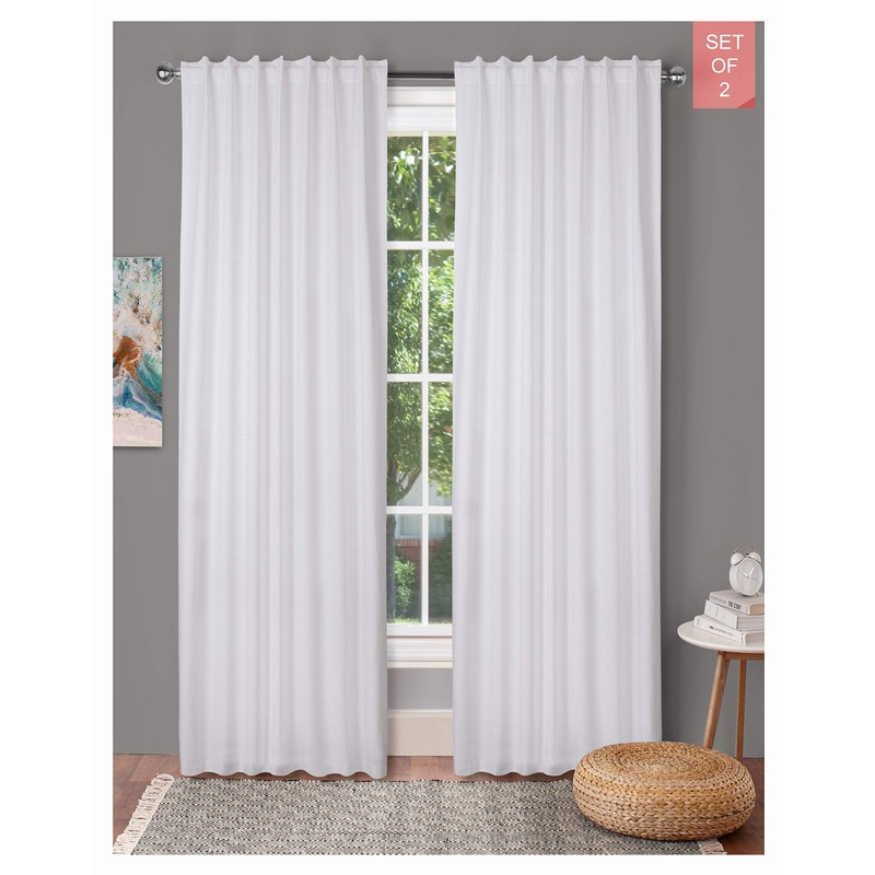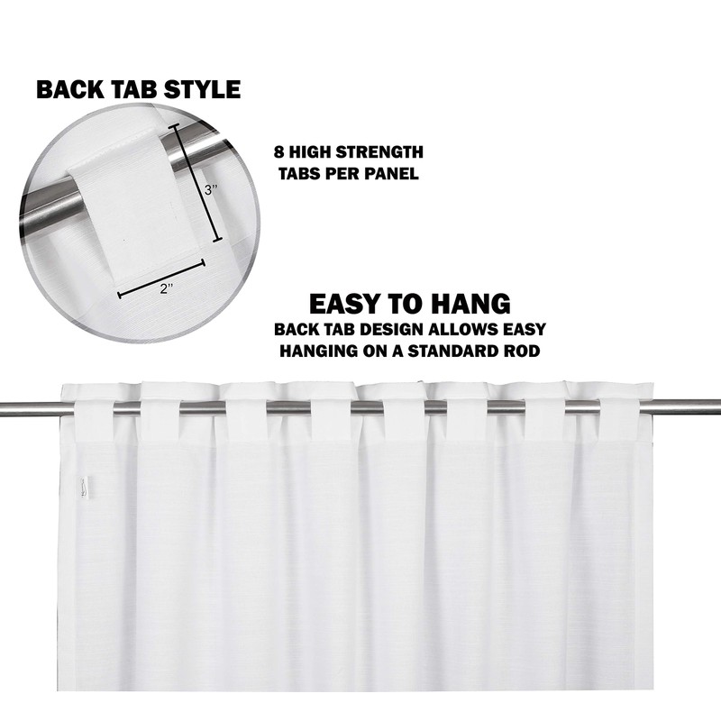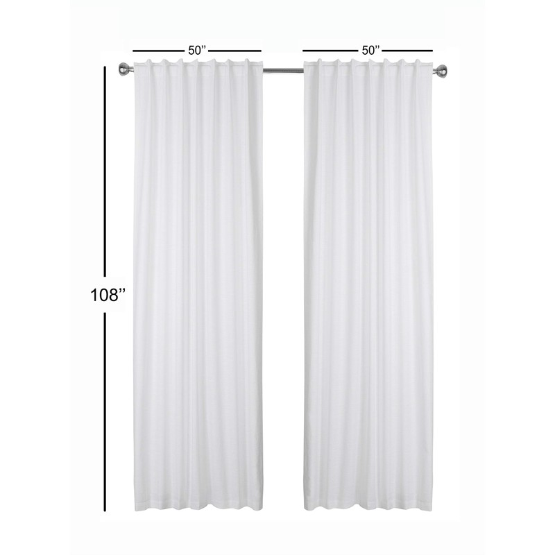 • A set includes 2 white slub cotton tab top window curtain panels measures (50 inch x 108 inch)