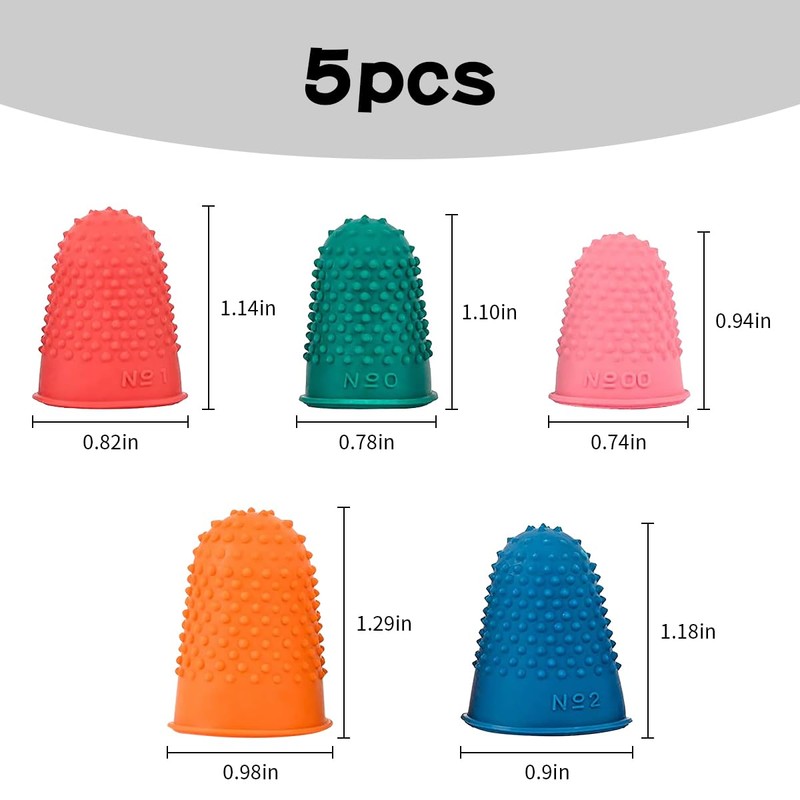 - Colorful Variety: Elevate your tasks with a set of 5 vibrant colors of rubber finger thimbles and pads, making your daily activities more organized and enjoyable.