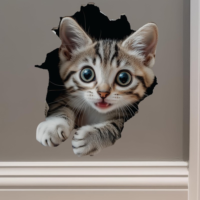 - GREAT DESIGN: Bring a playful surprise to your decor with this White Cat Decal, designed to look like a curious kitty breaking through the wall. Crafted from high-quality, durable vinyl, this 3D-effect sticker is easy to apply and leaves no damage behind. Ideal as cat art for pet lovers, it makes a unique cat lover gift that adds charm to any room. Perfect for adding personality to your space, this decal is a must-have for animal sticker fans!