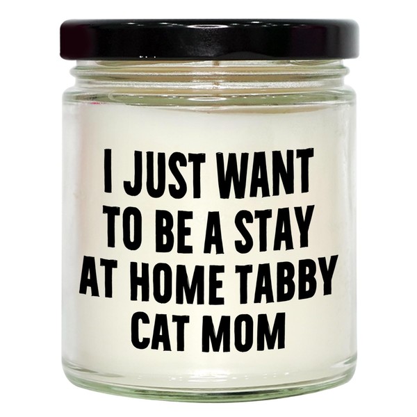 - Show your love for Tabby Cat with our unique 9oz Vanilla Soy Candle featuring the funny and relatable quote, 'I Just Want To Be A Stay At Home Tabby Cat Mom.' Perfect for the special Tabby Cat Mom or Dad in your life.
