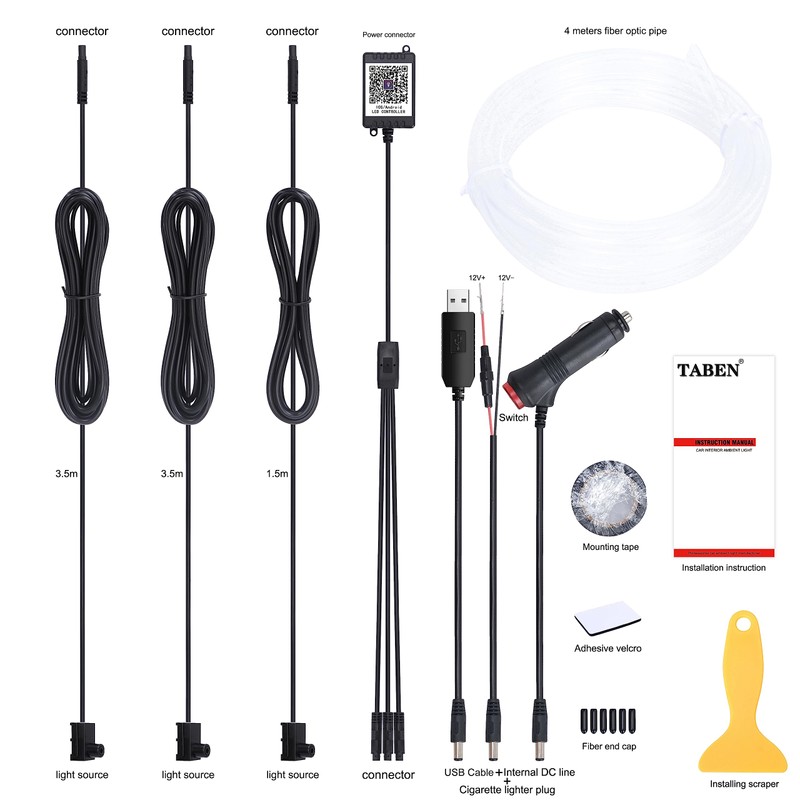 - ➤ 3 in 1 cable design: the car ambient lighting kit features a practical, flexible and unique 3-in-1 cable design (3 light sources) and has a fiber optic of 4 meters (157 inches) length, which provides the flexibility to install the lights in any car. Enjoy various functions of the "HappyLighting" app, such as music and scene modes, or simply turn your lights on/off and adjust the brightness.