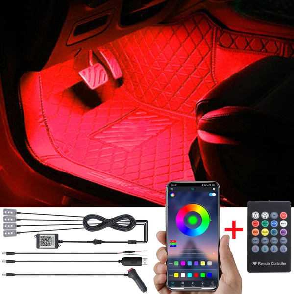 - ➤APP Control + RGB Remote Control Footwell Car Interior Lighting: This car strip light has 4 wires that connect 4 strip lights. Easier for you to set up and hide lines. Always keep your car clean and tidy. Comes with 2 x 190 cm (6.23 feet) and 2 x 150 cm (4.92 feet) connection cables and a 4.3 cm (0.14 feet) lamp, making decorating most cars a breeze. Longer cables, suitable for all model cars.