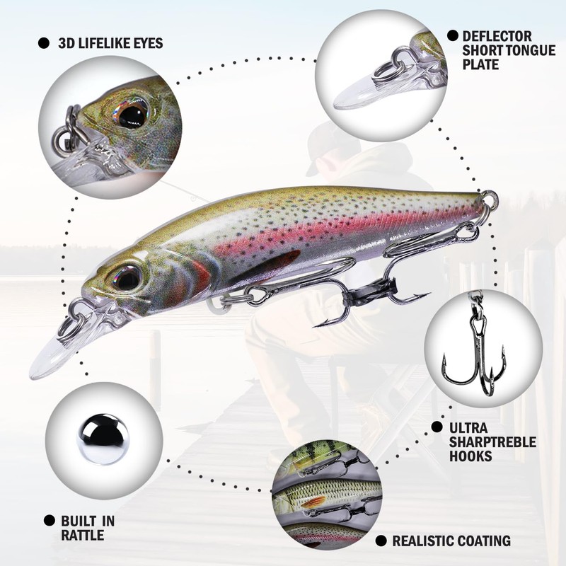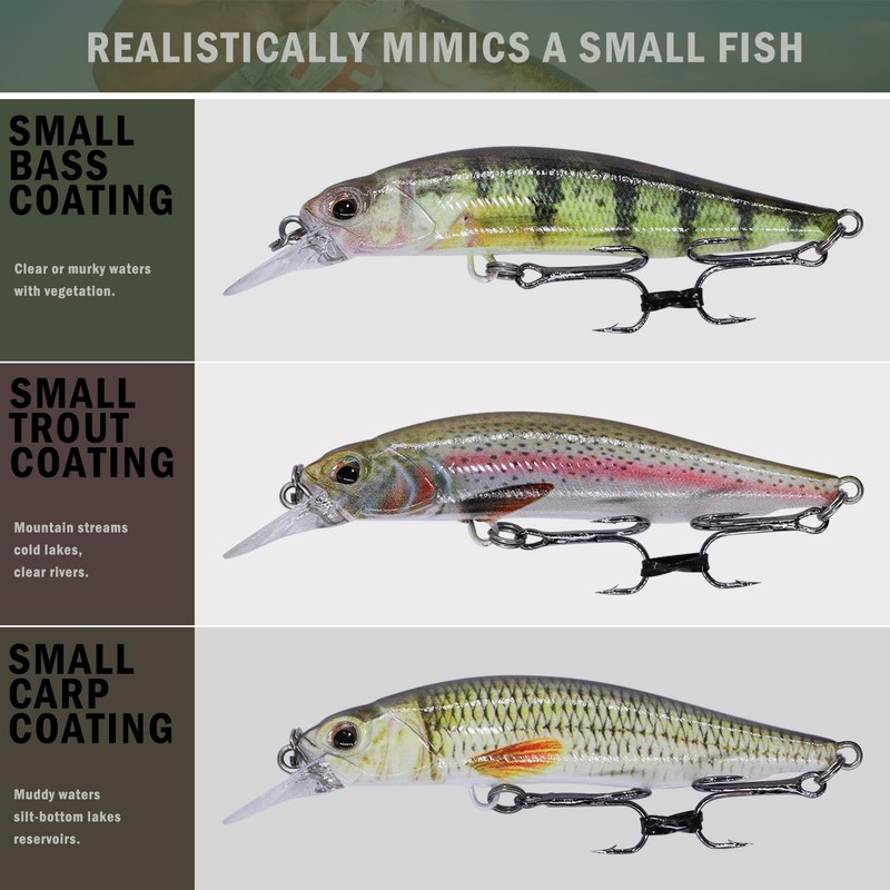 - WIDE APPLICATION Minnows are suitable for various bass waters: steep rock shores, flat zones, aquatic plants, shrubs and tree stumps. They are also extremely effective when fishing for black bass, trout, pike, catfish and many other predatory fish species - an essential tool for any angler.