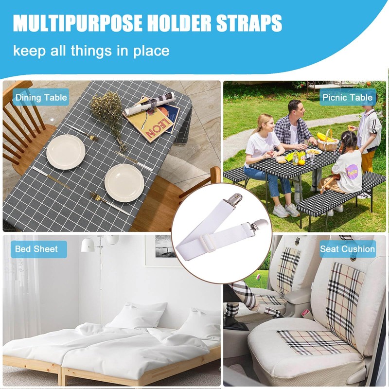- Multipurpose Elastic Straps: Our Tablecloth straps are practical accessories that provide stability and elegance to any table setting. With their wide range of uses, they are indispensable in outdoor dining, bed sheets, household meals, event planning, car cushions, restaurants, and trade shows. The multi-purpose nature of tablecloth straps makes them indispensable in different scenarios.