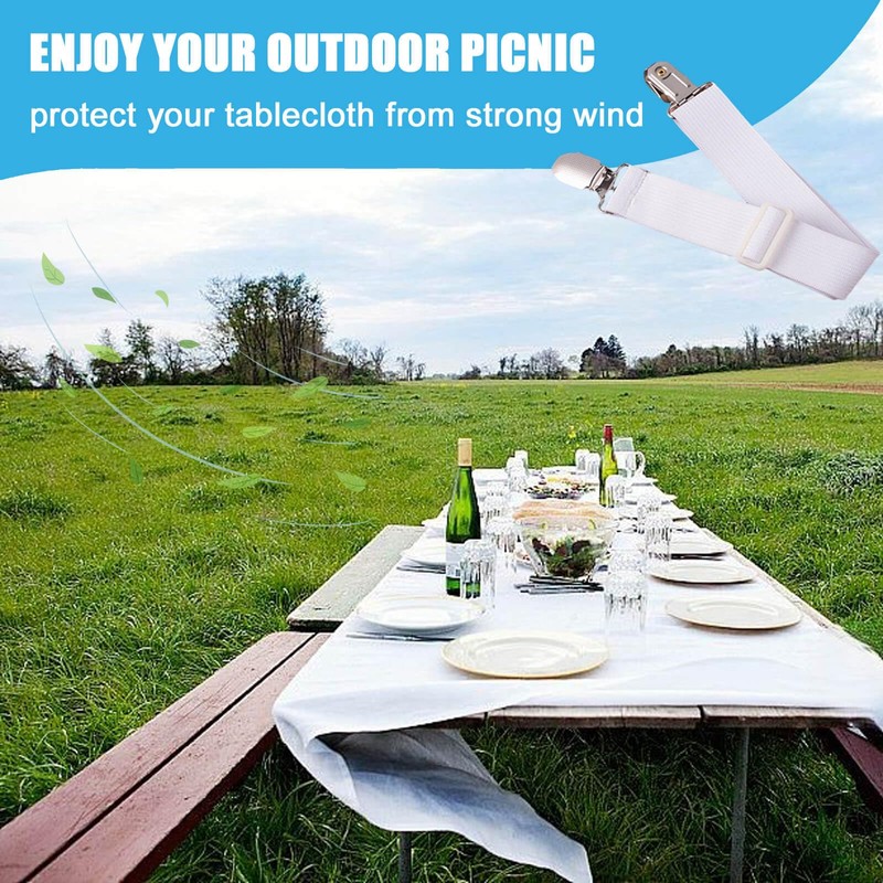 - Newest Hidden Strap Table Cloth Holder Clips: Easy to install and remove, our tablecloth clips require no tools or complicated setup. Simply clip the hidden straps around your tablecloth, adjust the tension, and enjoy a hassle-free dining experience with a clean and beautiful desktop. These clips are perfect for outdoor events and picnics, as they're easy to transport and set up, saving you time and eliminating the need for bulky metal clips, to keep your tablecloth wrinkle-free.