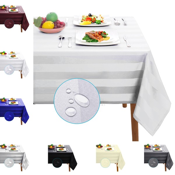 - Quantity and Size: We offer Black, White, Wine, Beige, Navy, Silver Grey and Dark Grey Striped Tablecloths. Each colour has two sizes, measuring approximately 137 x 137 cm or 54 x 54 inches and 137 x 274 cm or 54 x 108 inches. A tablecloth of the correct size may prevent scratches on your tables and provide a stunning visual impact. Tablecover Wipe Clean: Our table cloth wipe clean ensures effortless maintenance with its stain-resistant surface, ideal for family gatherings.