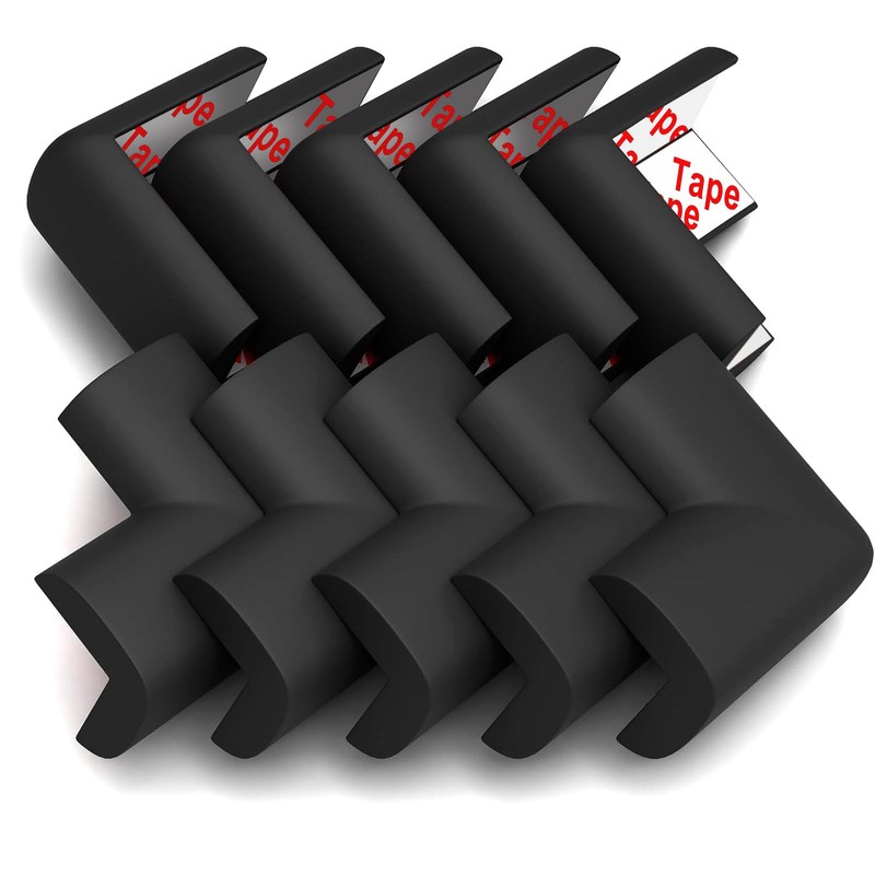 Table Corner Protectors, 10 Pack Foam Corner Cushion Protector, Edge Corner Guards for Baby (Black)