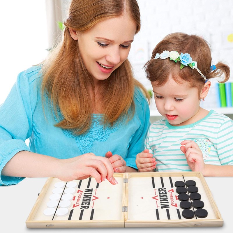 • Table football winning games: you will receive a foldable wooden board as well as 10 black and 10 white tokens, two players are required to participate in the game. Spend a good time together and share the fun of games