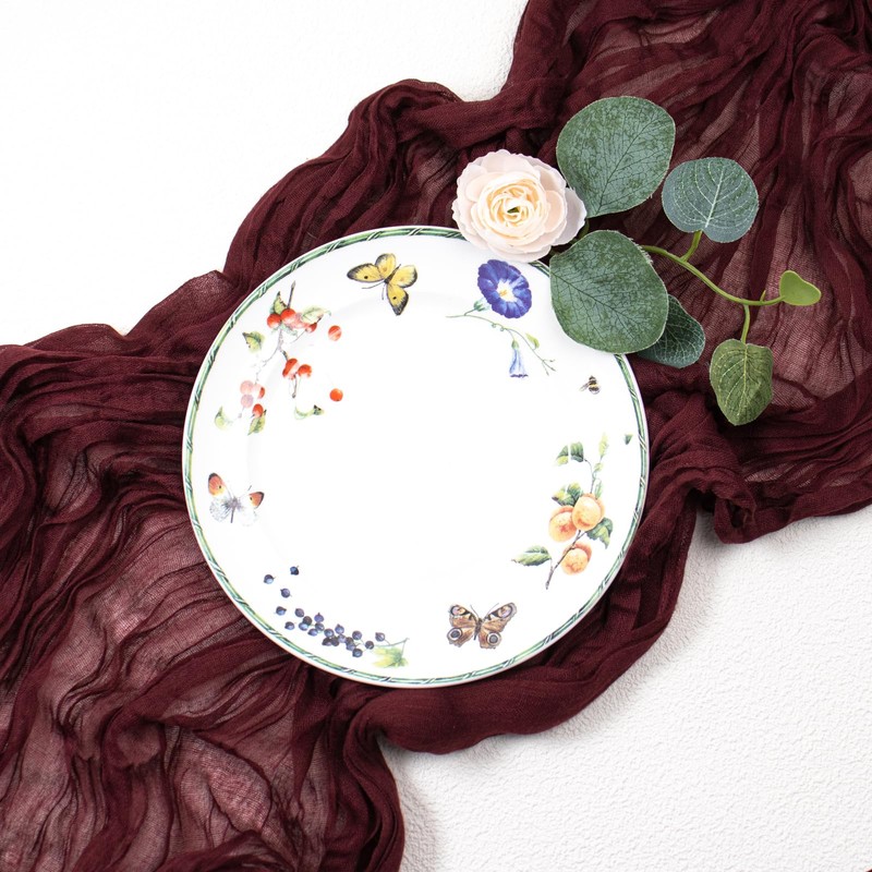 Table Runner Cheesecloth 10 FT Boho Rustic Table Runner Gauze for Wedding Easter Spring Decor Cheese Cloth for Baby Shower Birthday Home Decor (Maroon, 5 Pack)