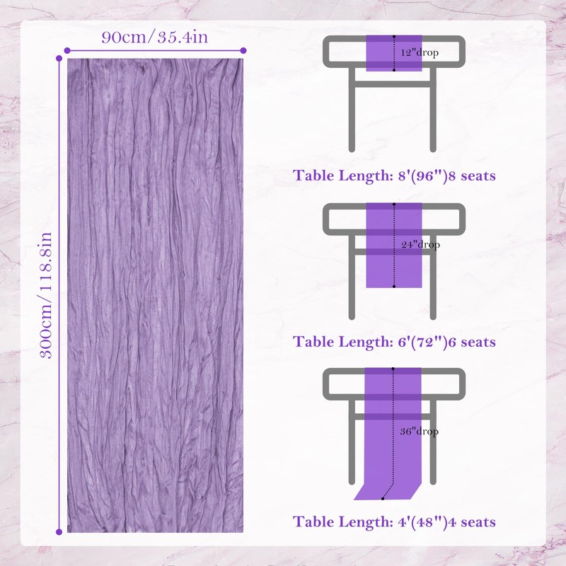 Table Runner Cheesecloth 10 FT Boho Rustic Table Runner Gauze Table Runner for Wedding Spring Decor Cheese Cloth Table Runner for Baby Shower Birthday Home Decor (Light Purple, 5 Pack)