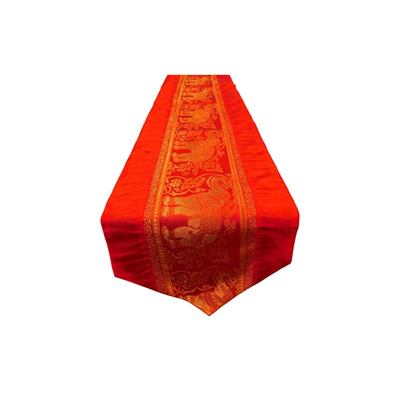 Table Runner Elephant Tablecloth Tablerunner Elegant Thai Silk (red) TSEE01