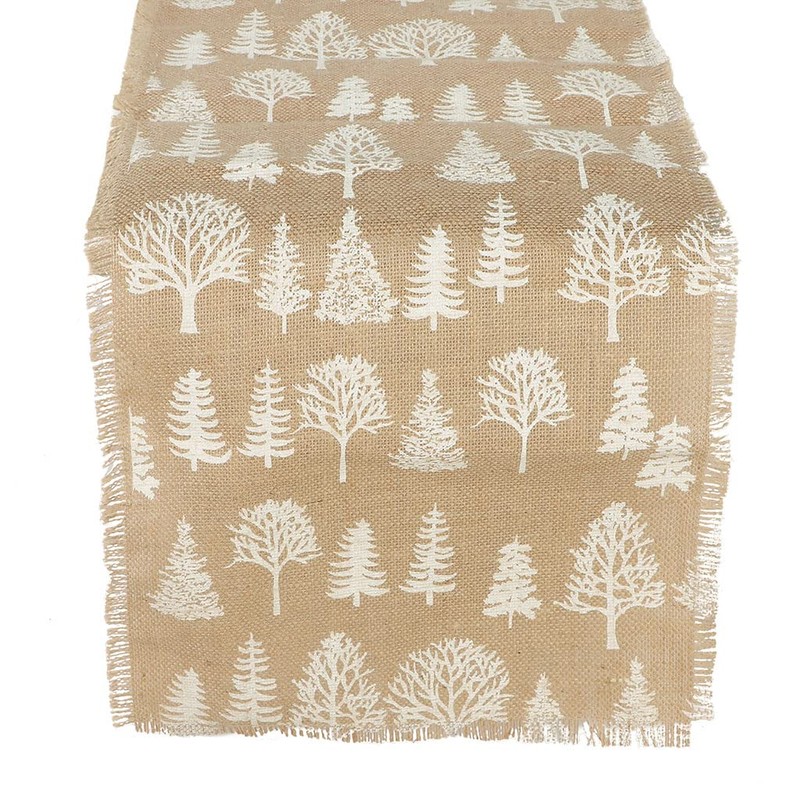 Table Runner Natural Woven Jute Winter Forest Printed 2.2m Decorative Winter Tablecloth (CV35)