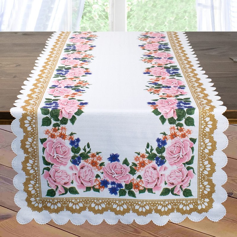 Table Runner Pink Roses White 40 x 140 cm Printed Table Runner for Spring and Summer