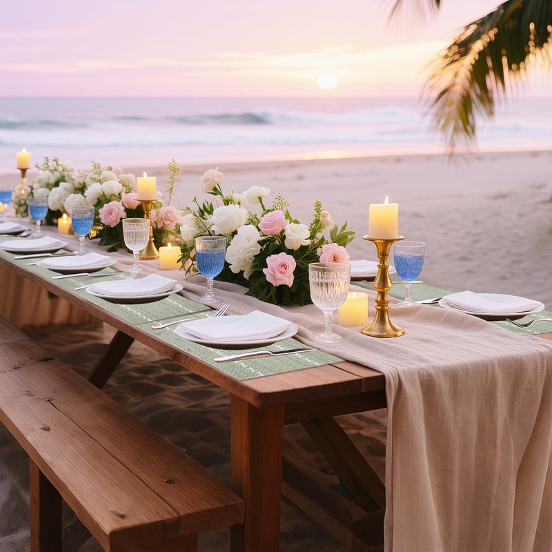 -Each SCAPEMAT features a stunning, intricate, hemstitched border -a hand-created signature detail. This elegant texture adds a touch of Bohemian sophistication to any occasion, be it a casual breakfast, a festive family dinner, a birthday party, a wedding party or a holiday gathering. Natural weave color options and earthy green and yellow are a warm, relaxed ambience in any dining area.