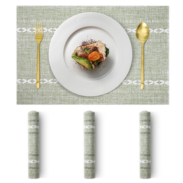 Table Set of 4 Washable Place Mats Boho Rectangular Farmhouse Style Place Mat for Home Kitchen Restaurant and Hotel Green