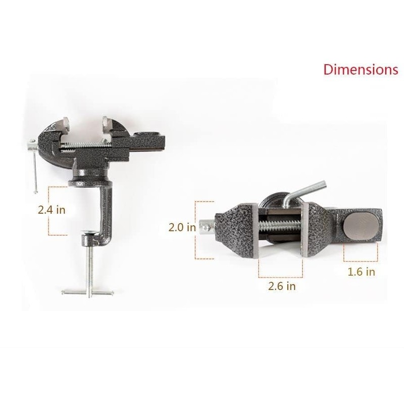 The vise can be rotated up to 360-Degree on its base for work positioning, It can attach to tables up to 2.4" thick to work almost anywhere.It can be installed at the edge of all kinds of desktop,No holes need to be punched in the desktop during installation, With 2 rubber gaskets to prevent scratches on the table and 2 jaw gaskets,Can hold the fixed platform thickness 2.4"(62mm), quick and easy disassembly.