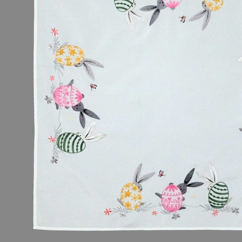 Tablecloth Ecru Colourful for Easter with Embroidery Easter Eggs and Easter Bunnies Spring (85 x 85 cm)