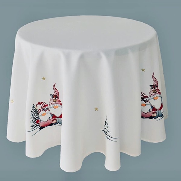 Tablecloth Table Runner Table Cloth Cushion Cover Christmas Wool White Embroidered with Red Gnome Men (Round 150 cm)