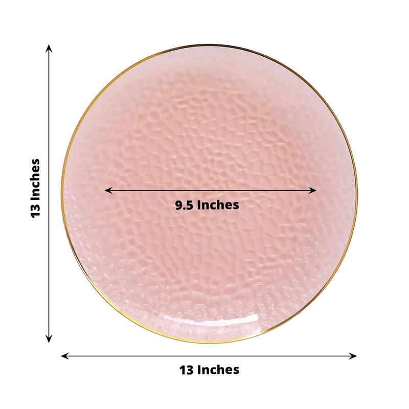 TABLECLOTHSFACTORY 10 Pack Transparent Blush Hammered Plastic Charger Plates, Round Disposable Serving Plates With Gold Rim - 13" For Party & Decorations