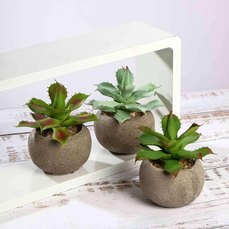 Tableclothsfactory Set of 3 | 5" Assorted Aloe Varietal Artificial Faux Succulents Mini Green Plants in Cement Pot