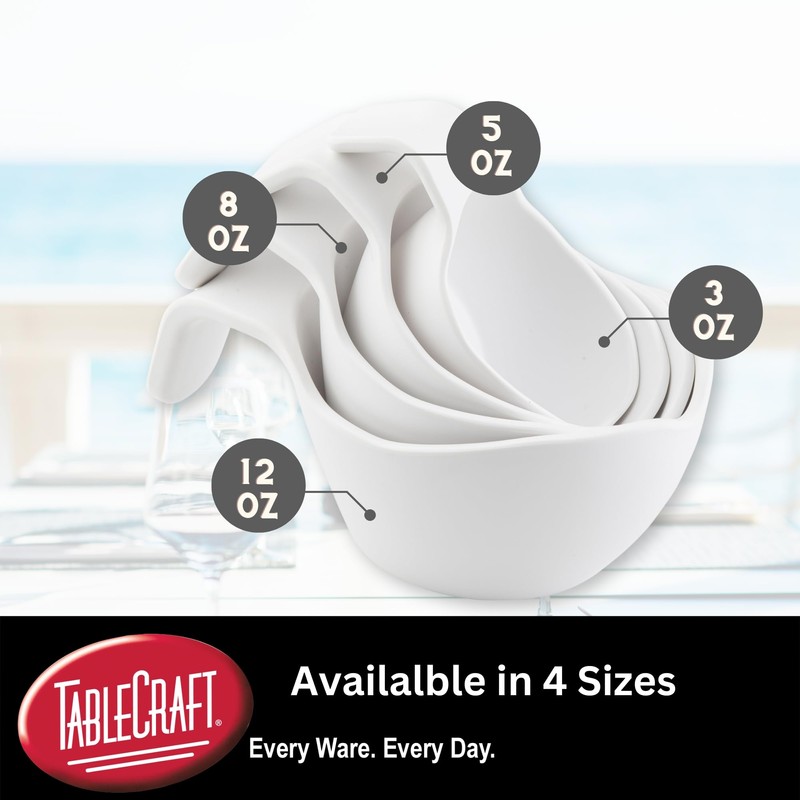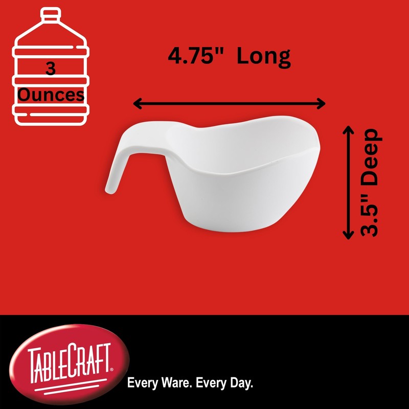 TableCraft 11677 Stackable Sauce Boats, Melamine Plastic Gravy and Condiment Pourers with Angled Handles, Break Resistant, 3 oz, White, 20 Pack, for Foodservice and Restaurant Use