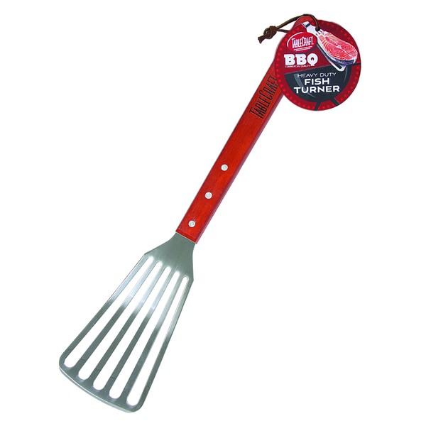 Tablecraft 18" Heavy Duty Long Handle Fish Turner, Silver, red, black