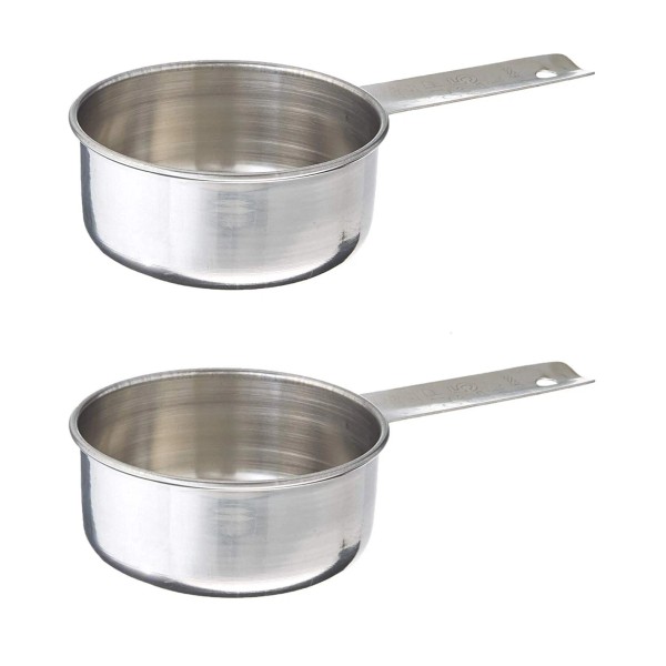 This 1/2 measuring cup offers an option for recipe-making needs. This measuring cup is made of sturdy stainless steel that can withstand the rigors of a professional kitchen environment. It is an essential kitchen product. Comes in 4-ounce capacity. 2-pack for better economy.