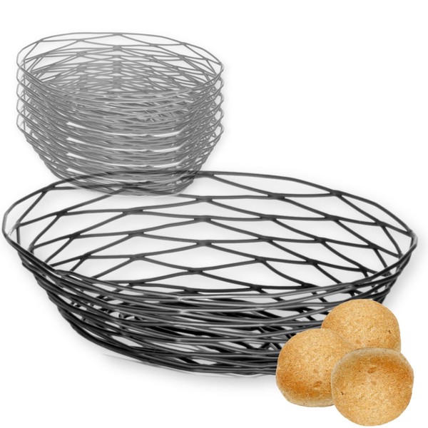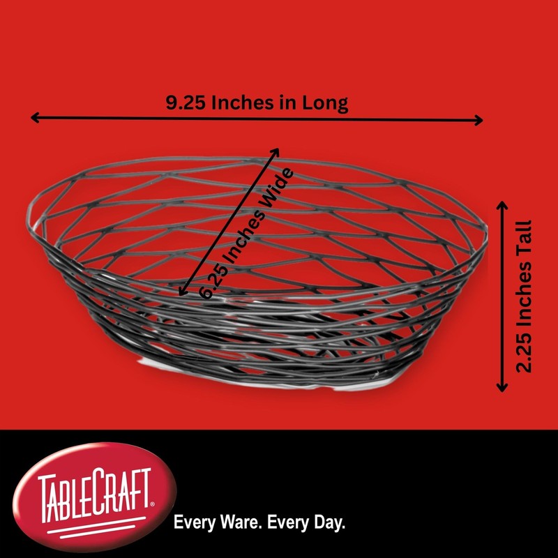 Tablecraft Artisan Oval Baskets Black 9inch - Pack of 6 | Serving Baskets, Wire Baskets, Bread Baskets, Chip Baskets, Food Baskets