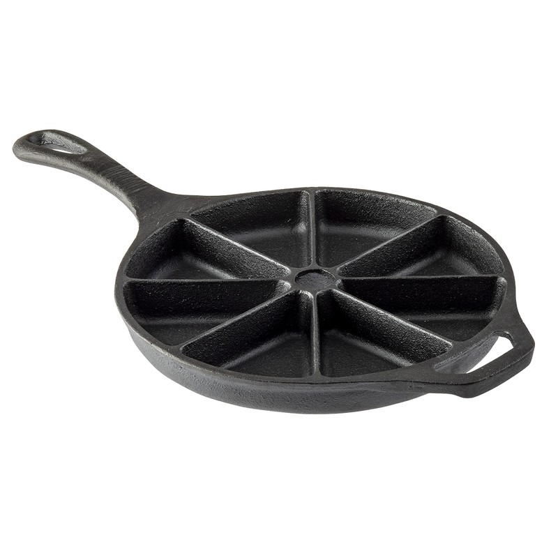 TableCraft 10750 Cast Iron Round Corn Bread Skillet with Handle, Pre-Seasoned 8-Wedge Divided Design, 8.75” Diameter x 15.625” Length – Bake Cornbread, Cakes, Frittatas & More – Durable, Even Heating